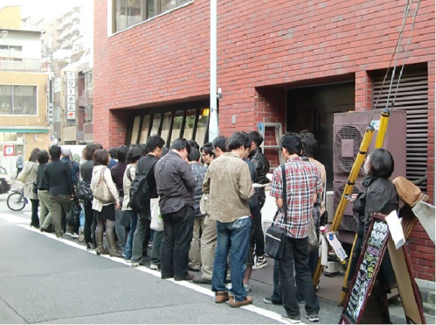 ラーメン屋の列に割り込むおばさん。