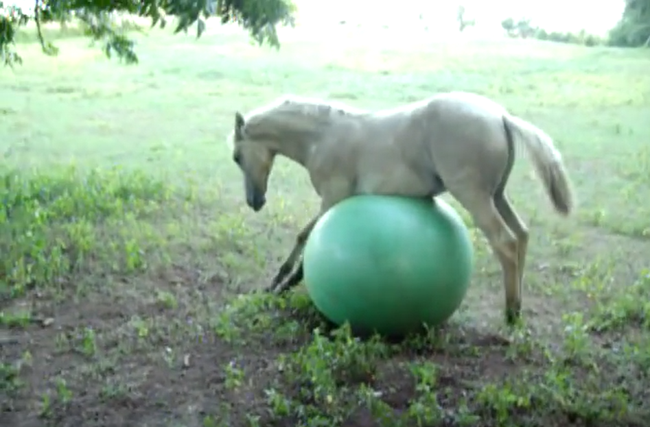 バランスボールを無邪気に遊ぶお馬さん